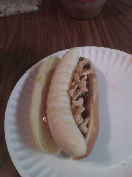 Tomar la miel y salpicar todo el plátano en un movimiento de zig-zag. Tratar de que no en el pan, ya sólo hará un lío pegajoso al intentar recogerlo.