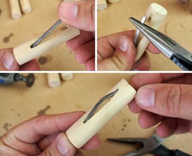 Lugar uno de los extremos del acero doblado en un perforado abertura del perro de banco con el cenit del arco hacia el perro, entonces utilice alicates para doblar el acero y el otro extremo de la fuerza en la otra apertura perforada.