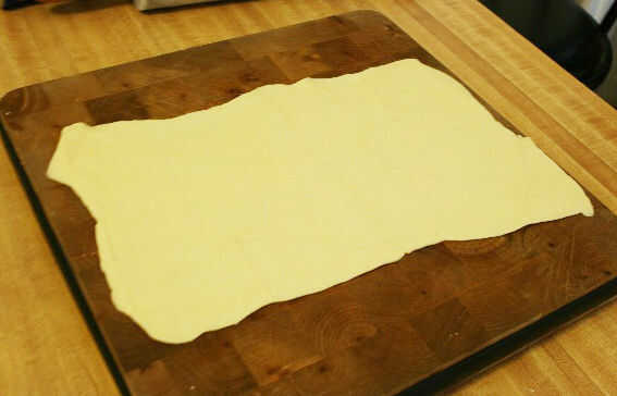 Estirar la masa de galleta (tengo una seria debilidad para Crescent Pillsbury) y a pellizcar cualquier costuras.