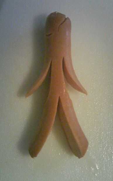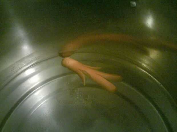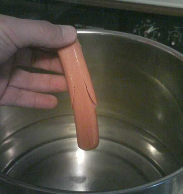 Mis 3 niños tenían una ráfaga completa haciendo esto!Espaguetis Hot Dog!Básicamente kid friendly espaguetis y albóndigas!Paso 1: Pinchar los perros! Pasta espagueti duro... usa cabello de Ángel...Les traba derecha a través del perrito caliente rebana