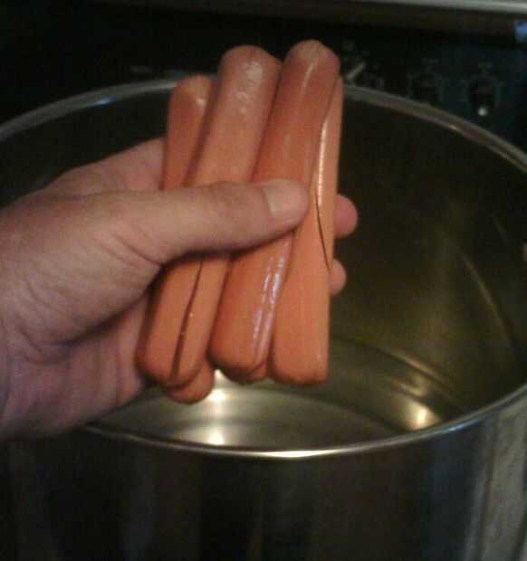 Mis 3 niños tenían una ráfaga completa haciendo esto!Espaguetis Hot Dog!Básicamente kid friendly espaguetis y albóndigas!Paso 1: Pinchar los perros! Pasta espagueti duro... usa cabello de Ángel...Les traba derecha a través del perrito caliente rebana