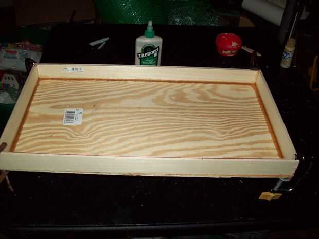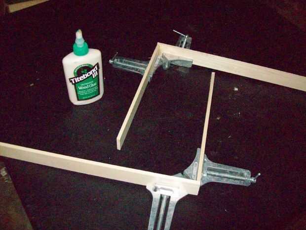 Arme los lados de la caja con pegamento para madera y abrazaderas en L.  Una vez que son secas, pegar en la base y con las abrazaderas en C.  Dar a cada uno de estos un buen 24 horas secar...