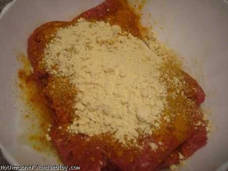1 - poner la cebolla rallada en un recipiente grande y agregar la carne molida, agregue sal, pimienta negra y mezcla de especias persas (advieh) (como se prefiera) y homogeneizar la mezcla.