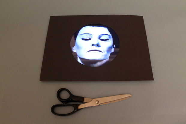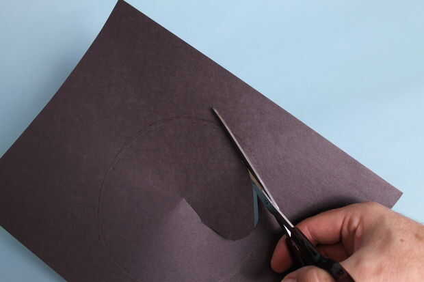 Corte una abertura en el papel negro de construcción siguiendo el círculo trazado. Que tenga que ajustar el tamaño del agujero en el papel de construcción para permitir a la imagen de la cabeza sea visible en su iPad u otro dispositivo.