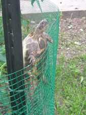 Nos gusta dejar nuestra tortuga vagan por la casa y generalmente tener un buen ojo, pero siempre logra hacer furtivamente apagado y pasamos horas y horas jugando al escondite tratando de averiguar donde iba. Incluso tuvimos un 4 pies de altura vallado en el jardín que escapó varias veces, y no sabemos cómo, hasta que le pillamos en el acto (ver fotos). La tortuga rusa al parecer es un artista del escape entrenado, en movimiento muy rápido, muy bien camuflado y buenos en la madriguera. Necesitamos una solución donde podemos dejarla a divertirse, pero asegúrese de que ella es segura y que podemos encontrarla.
