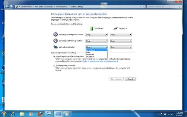 Seleccione no hacer nada cuando CIERRO la tapa cuando el batería option(refer figure) y guardar la configuración