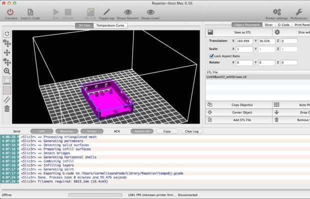 En mi caso estoy usando Repetier Host como mi software de impresión 3D con el metal Printrbot Simple y la máquina de cortar de ajustar en altura de la capa 0,2 mm. Y los archivos de impresión debe toma par de horas.