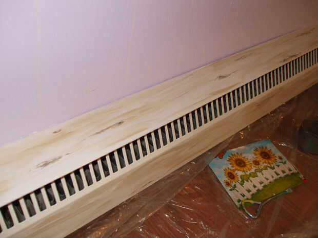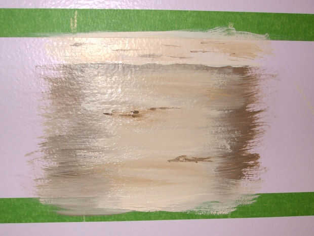 A continuación se pintan las barras verticales. Utilice cinta para definir la forma. Dolía de forma un poco más oscuro en la parte superior para definir la profundidad de la barra. Normalmente yo también incluiría un lado así lo piquete pero éstas debían ser vistos directamente en según el material de referencia. Una textura de madera fue pintada sobre la superficie de las barras para que coincida con el radiador.