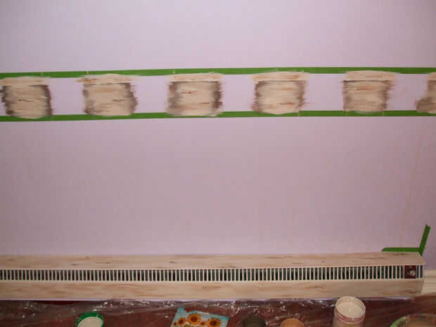 3.) donde esta placa pasa detrás de la vertical estacas se obtiene un poco más oscuros (sombras y la aparición de erosión / suciedad). Porque este poco de la oscuridad va a ser pintado encima, puede estar un poco descuidado aquí. Sólo asegúrese de que la pintura va más allá de las marcas en la cinta.