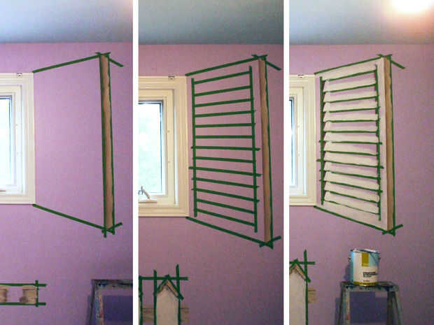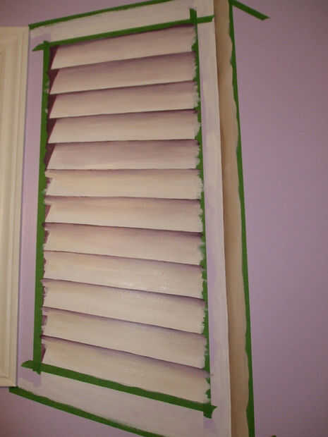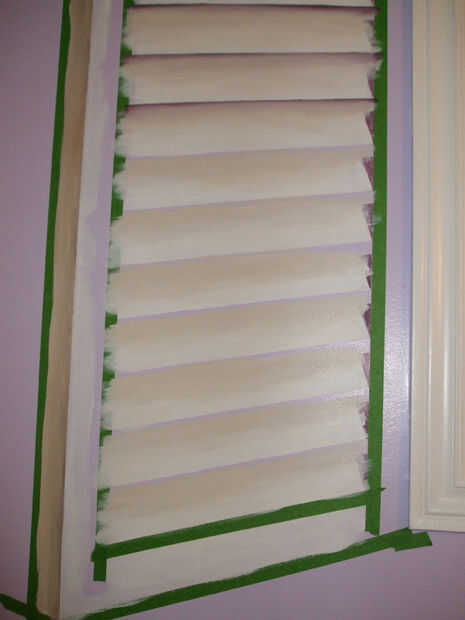 6.) pintura en las sombras triangulares, redefiniendo la forma de las tablillas más cercanas a la ventana. El borde externo de los listones se oculta detrás del marco de la persiana.