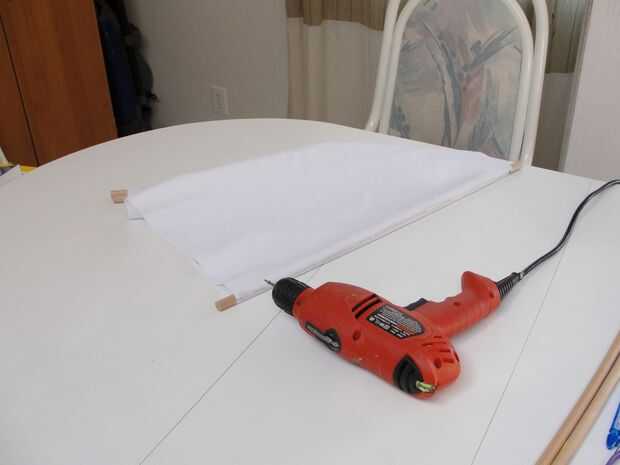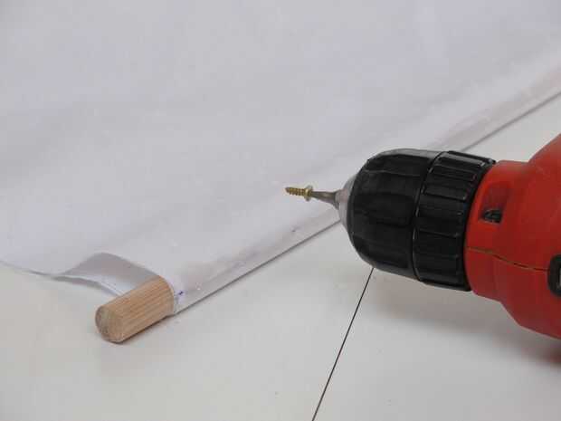 Pegar la tela a la esviados. Taladre un orificio piloto y asegúrelo con un pequeño tornillo o clavo para la fuerza adicional. Si usted no quiere, el pegamento de la tela mantiene bastante bien; Me sorprendió gratamente.