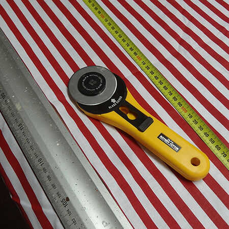 1. cortar la tela a tamaño según si van a quedar ciegos dentro de un hueco de ventana o en la parte superior.