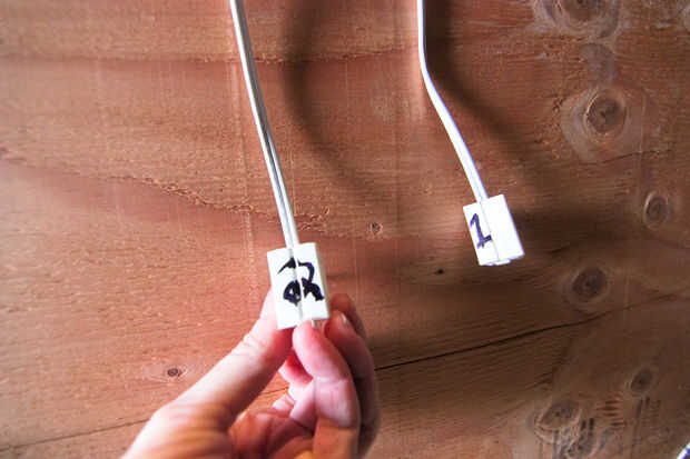 Una vez terminado, Coloque enchufes masculinos para terminar. Asegúrese de que cada enchufe de la etiqueta para que conecte a entradas correctas en el controlador.