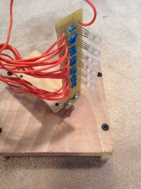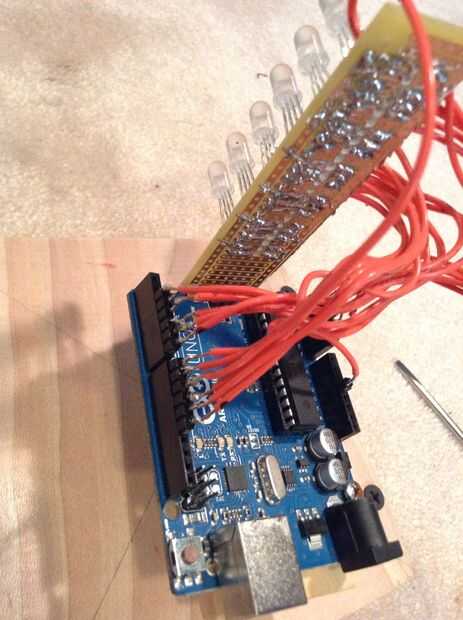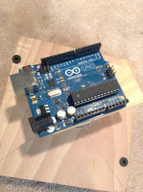 Esta parte es bastante sencillo y no debería haber muchos problemas. El motor debe ser capaz de girar su Arduino, panel de led y un pequeño trozo de madera. Todo lo que tienes que hacer es medir su motor y haga un orificio en su base, si el agujero es demasiado grande Envuelva su motor en cinta agrandando el diámetro. A continuación, atornille la Arduino a un pequeño trozo de madera más ligero se puede encontrar. Utilice los agujeros en el Arduino. Ahora, el panel del LED a un lado de la Junta usando arandelas de tornillo, tenga cuidado de no apretar el tornillo a duro como la Junta de tira se romperá. Esto es realmente difícil pero ahora encontrar el centro de gravedad de la Asamblea de Arduino y pegar los cambios en él. Yo JB weld pero estoy seguro de que usted puede usar otros tipos. Ahora, deje que se seque. Después lo dejas secar una sus 4 AA de la batería al motor. que tendrás que jugar con la polaridad más tarde para mostrar correctamente lo que quiere. También, Iplan en hacer una actualización para un controlador de velocidad de 555 temporizador base pero de momento esto funciona.