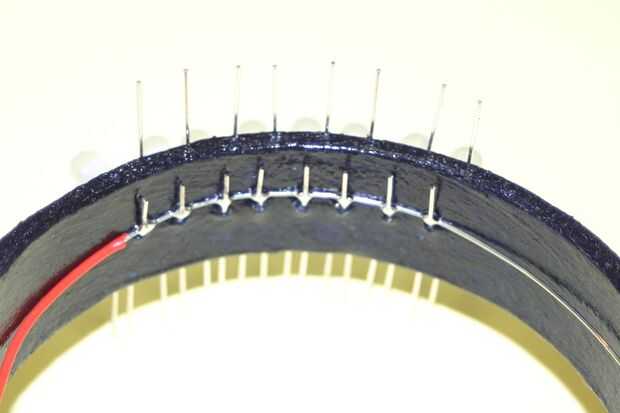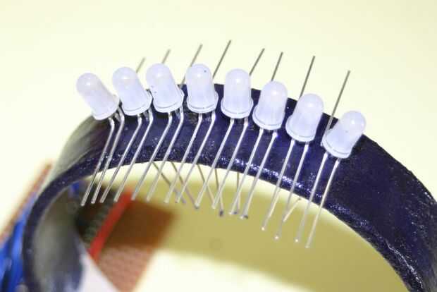 Poner todos los LED en coloca en el tubo y luego coloque un trozo de cable de núcleo sólido por debajo de las piernas para que pueda doblar los ánodos sobre el alambre y soldar a ella. Una vez que lo hecha puede ser vale la pena solo que todo trabajo de LED.