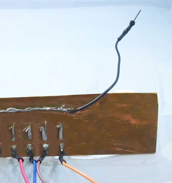 Tira de ambos extremos de un cable (preferiblemente negro) y conecte la resistencia sacarse, esto va a ser un motivo. Soldar entre sí. (ver imagen 6)