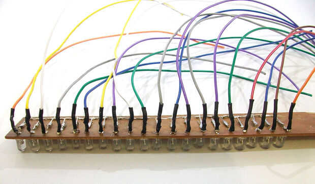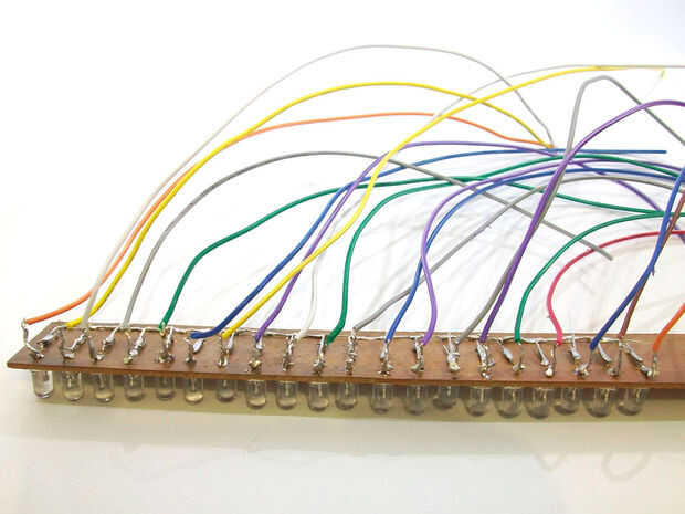 Conecte los cables a cada uno de los LEDs en el perfboard. Como la soldadura de cada conexión clip el exceso llevar el extremo del LED. (ver imagen 1 y 2).