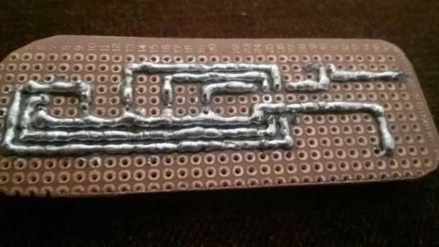 5. conectar el resto del circuito como se da en el picture.make de diagrama de circuito Utilice soldadura puente técnica, como todo el tablero no debe tener cables.