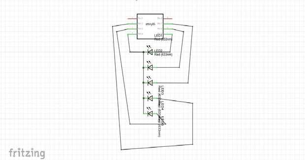 4. Conectar la tierra de todos los leds al pin 85 attiny 4