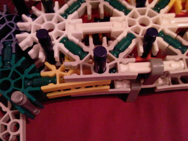 Consejo: al colocar el panel de la carrocería final, separar las piezas que han de sujetarse a las barras azul y fijar a las barras, luego coloque el resto del grupo ya es más fácil de hacer