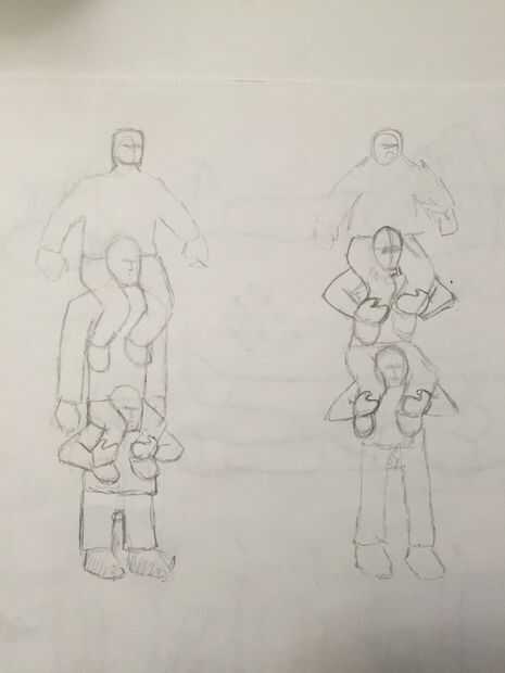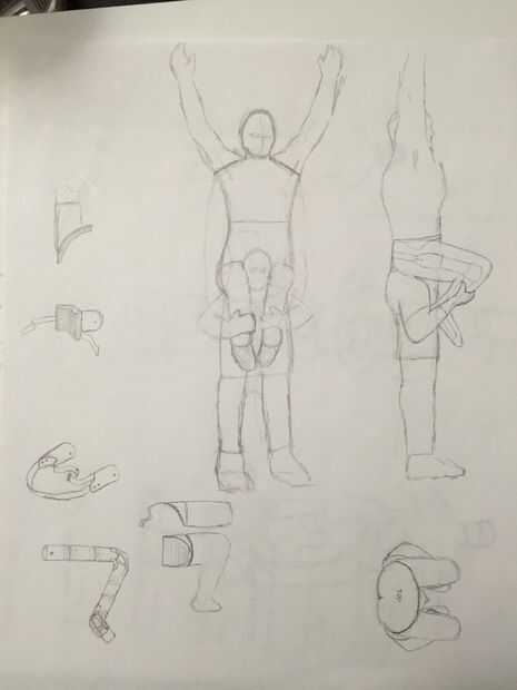 También es una buena herramienta para resketching la idea una vez que esté construida la mitad. Echa un vistazo a la última foto, una vez que la mayor parte de la estructura del cuerpo superior e inferior la mitad, tuve que averiguar cómo la ropa todos trabajarán juntos para completar el efecto.