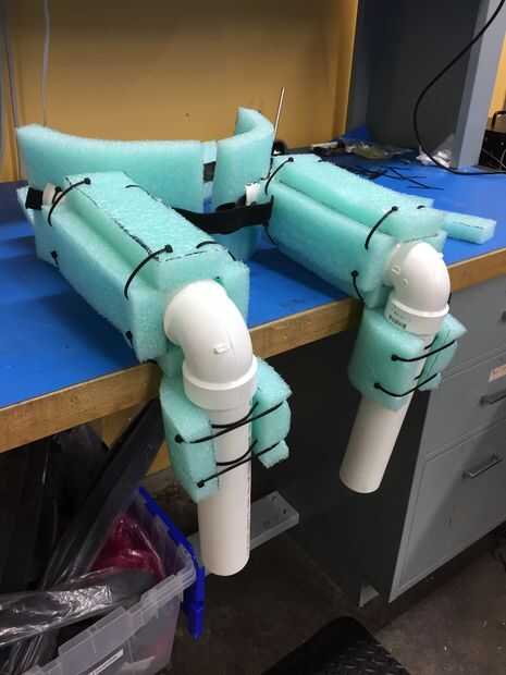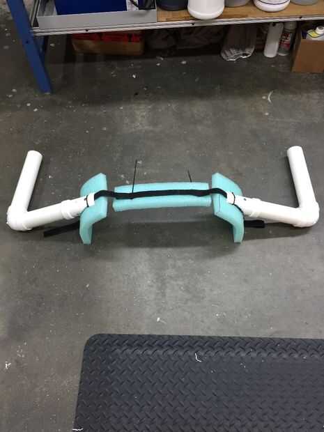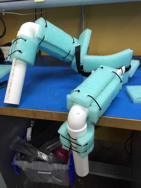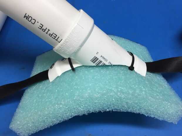 Por fin encontré algunos espuma (embalaje?) ahí en mi trabajo y estratégicamente zip atado a los accesorios de PVC y las correas de velcro para absorber el esfuerzo que serían directamente sobre mi piel.