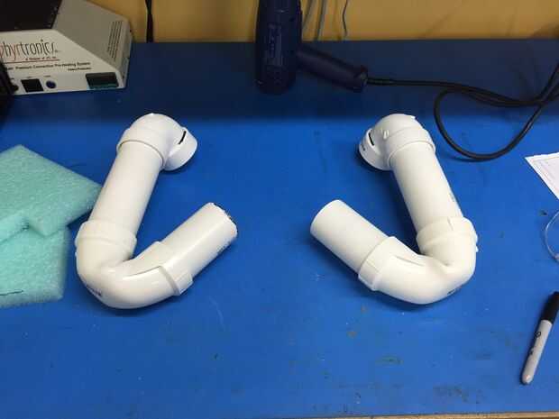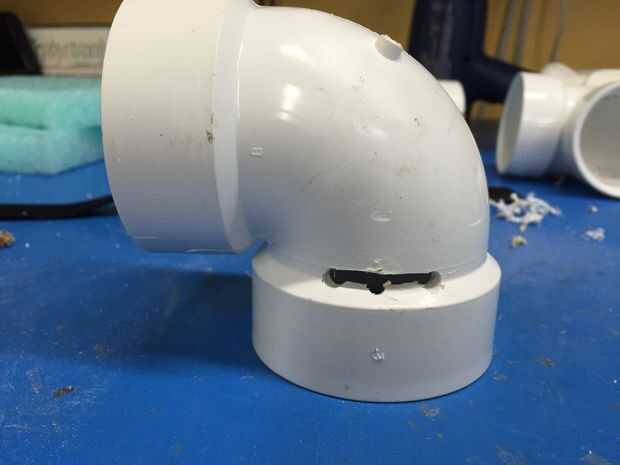 Utilicé una pistola de calor para obtener el codo montaje todo melty, entonces doblado en una posición aproximada.
