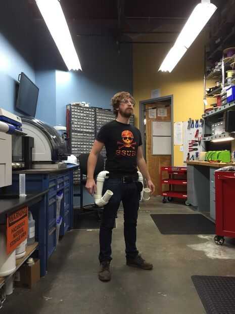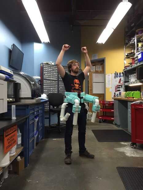 Para los brazos, lo hice más o menos lo mismo como lo hice para las piernas, excepto no concedo las correas de velcro directamente a las instalaciones de tuberías. Quería ser capaz de ajustar la posición de los hombros a lo largo de las correas por lo que sólo alimentó a través de unas ranuras apretadas.