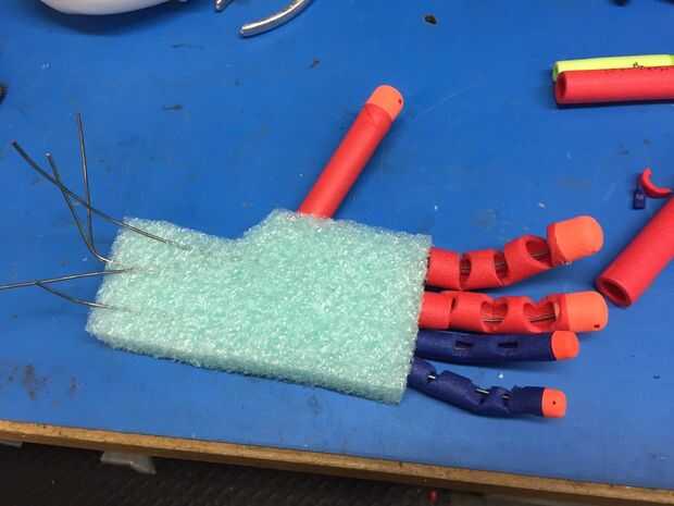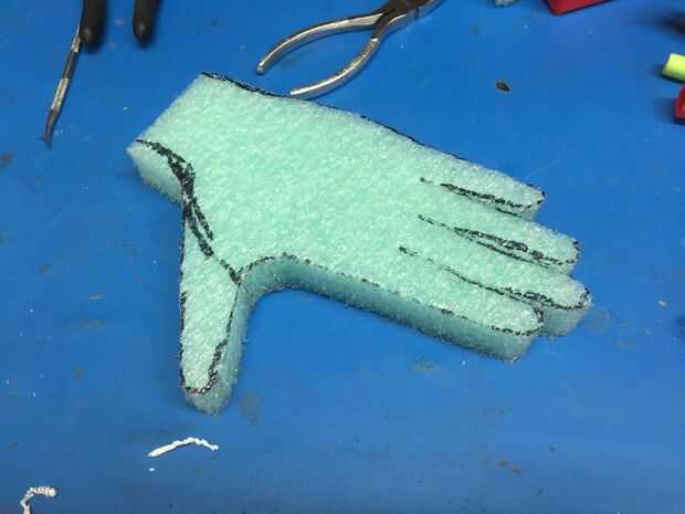 Decidí hacer las manos de su propio paso debido a lo intrincado del diseño fue. También probé dos estilos diferentes como se aprecia en las fotos. Sí, esos son dardos Nerf. Creo funcionaron bastante bien, pero una vez que cortarlas para que actúe más como dedos tiene muy débiles. Debido a que (y a la razonable cantidad de tiempo que pasé en él) decidí hacer una mano de la espuma completamente. Tengo que agradecer a SpyrosB por la idea aunque!