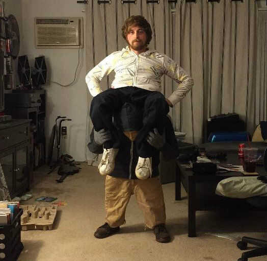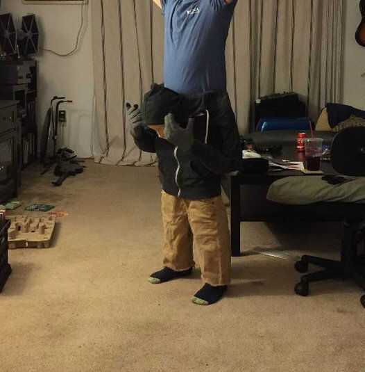 Decidí usar una vieja sudadera con capucha elástica para pasar mis piernas para que yo pudiera tener cierta maniobrabilidad, pero una vez que se pusieron los pantalones abajo apenas podía caminar. Una vez tengo algo manteniéndolos además de mis rodillas cuando voy a poder caminar un poco mejor. Planeo añadir algunas ligas ocultas.