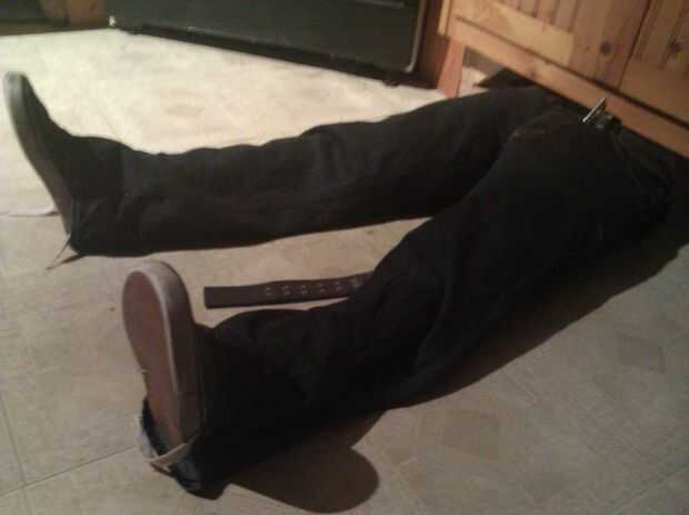 Yo relleno una hoja por la parte trasera de los pantalones parte hacia fuera un poco la pelusa y simular las nalgas y los muslos. Aunque realmente no puede ver las partes una vez que todo está, la almohadilla extra en la espalda harán las piernas extienden más y hacer uso de las articulaciones de rodilla para añadir más realismo (y también para mantener las piernas de caminar de forma).