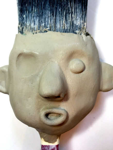 A apéndices adjuntos más suaves, ojos y cara utilizan un pequeño pincel humedecido con agua para equilibrar todas las áreas del carácter. Seque durante la noche en posición vertical. Puede poner una capa de gesso sobre el carácter seco o la pintura directamente sobre la arcilla. Prefiero el gesso blanco antes de aplicar pintura para más de un color verdadero.