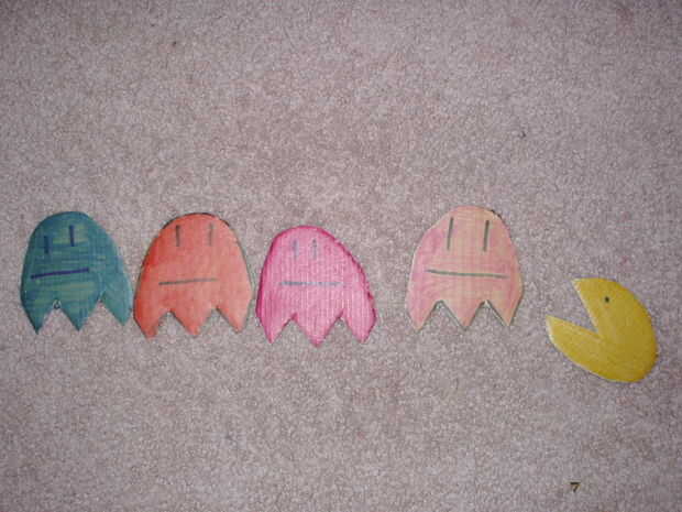 Pac-Man y sus fantasmas! Esto comenzó como un proyecto a ganchillo a Pac-Man. Entonces esto ampliado a hacer los fantasmas, luego a hacer fantasmas con ojos movibles y por último a añadir en las cubiertas para hacer los fantasmas cambia a azul oscuro