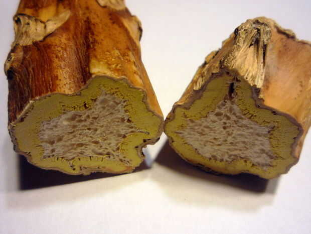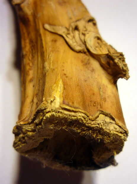 he utilizado la base del tallo de col como la parte superior de mi personal. El otro extremo no era arbolado a través - en cambio, cuenta con un centro fibroso (ver fotos). Protegió haciendo un zapato de