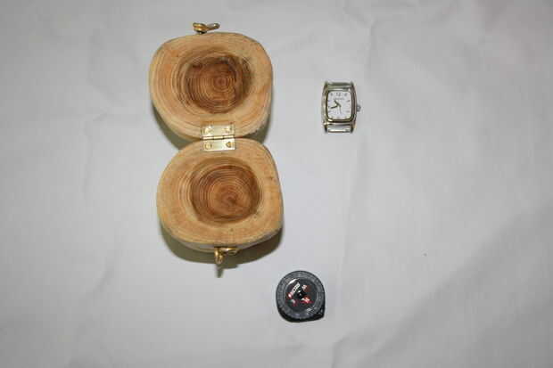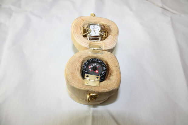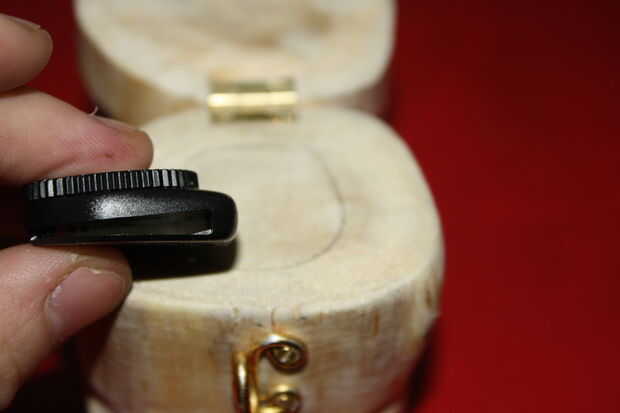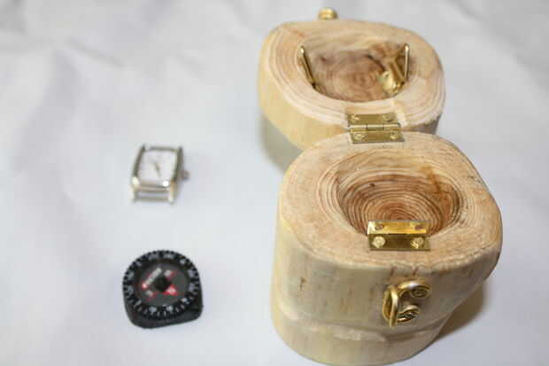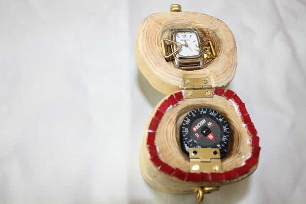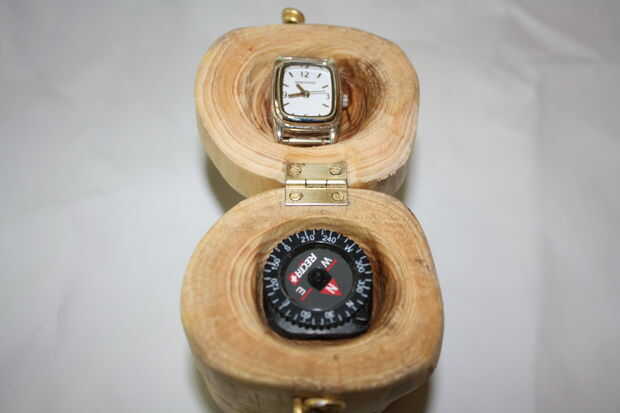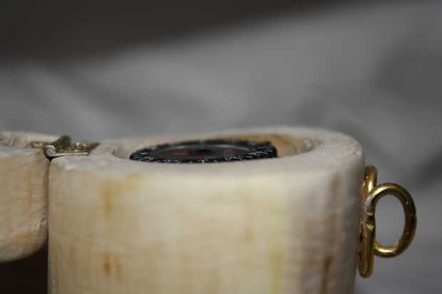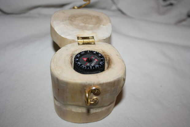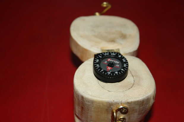Primero encontré el compás de tamaño perfecto así que empecé con este. Marcado un esbozo general del tema en la madera. Y arena, con la dremel. Hasta que fue lo suficientemente profunda para albergar el compás modificado.