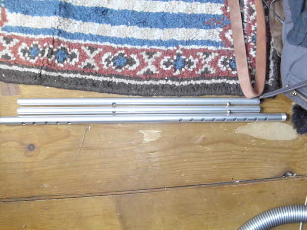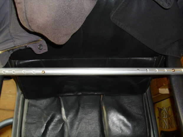 Tomar la muleta, saque todas las piezas de la tubería superior. El extremo inferior tiene varios agujeros. El primero es unos 5cm del extremo y distancia entre agujeros es de 2, 5cm. Tenga en cuenta que los agujeros siempre se miden desde el centro del agujero.