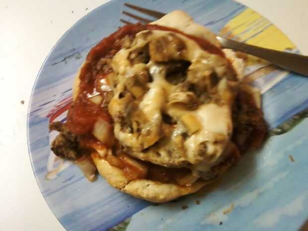 gracias por comprobar hacia fuera mi Pizza!  Esta pizza tiene una corteza en la parte superior como en la parte inferior. La forma típica se puede hacer reduciendo la receta de la corteza por la mitad y cocinar directamente en una piedra de pizza pre