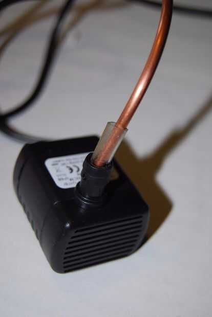 He encontrado algunos tubos de acuario conectado a un lado de la tubería al puerto de salida de la bomba. Si usted no consigue a un buen partido, InstaMorph puede utilizarse para un conector entre dos partes del molde. Bordillo de madera encima de la superficie con papel de lija para dar la InstaMorph más agarre y poner un trozo de tubería dentro del agujero de la bomba y fuera el tubo de cobre para mantenerla alineado con modeló la conexión.