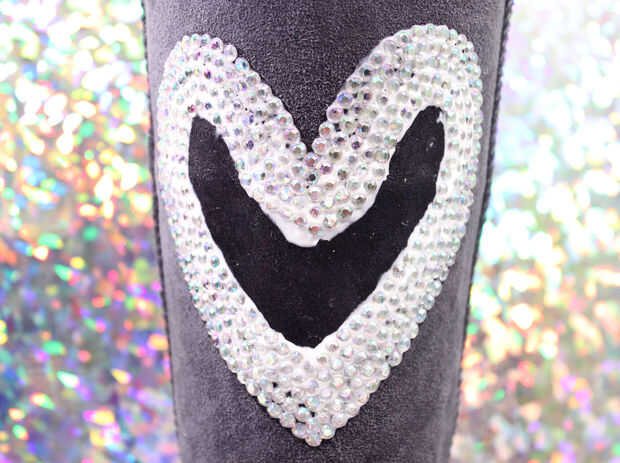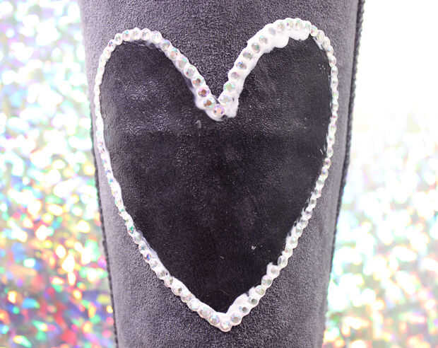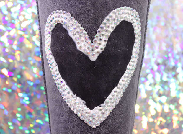 Un pincel y añadir pequeñas tiras de pegamento a la vez. He creado el borde del corazón primero para asegurarse de que las piedras crearon una forma agradable. Aplicar con un poco de presión para que obtener un buen enlace con suficiente pegamento para asegurarse de que el se adhieren completamente a su arranque.