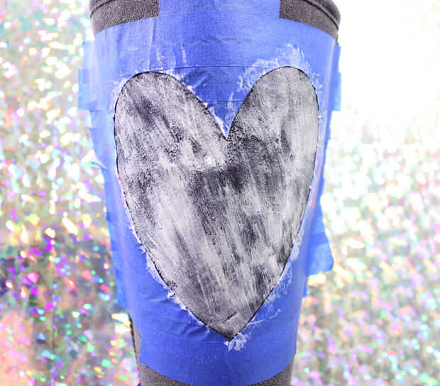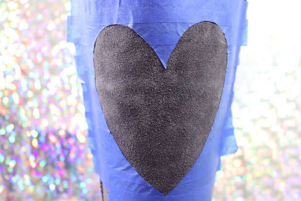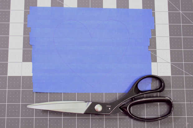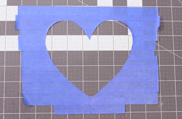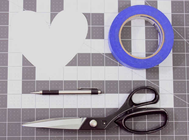 Usé cinta de pintor para crear mi plantilla. Superpuesto filas de cinta de pintor para crear una hoja que era lo suficientemente grande como para dibujar en mi plantilla de corazón. Mejor hacerlo sobre una superficie lisa para que la cinta se desprenda fácilmente. También puede usar papel de calcomanía pero tenía cinta de pintor por parte y me funciono perfecto!
