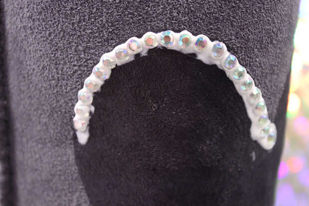 Después de que el pegamento se seca puede comenzar a agregar las piedras.