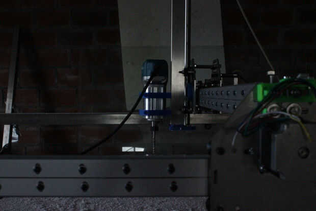 Básicamente, se trata de un Shapeoko gigante, hecho de tubos de acero y OpenRail.