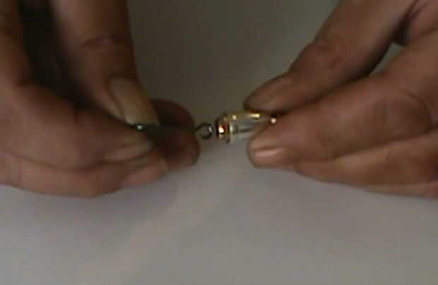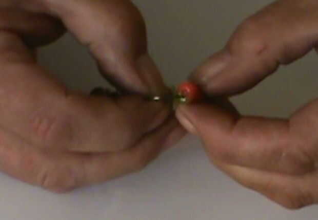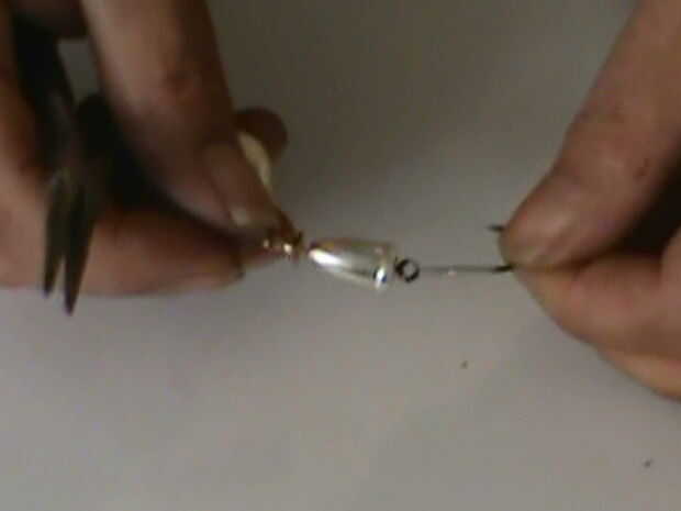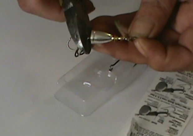 Enganche el ojal abierto en el lazo en la parte trasera del señuelo y apretar la anilla con los alicates de punta.