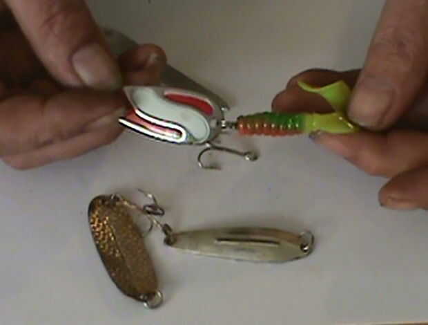 Cuando el nuevo gancho se une a la hoja de cuchara rizada cola grub en el gancho del mismo modo que el zorro azul.
