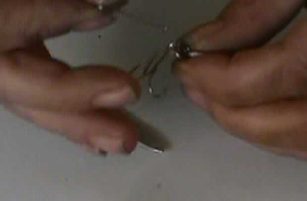 Dejando el gancho en el extremo de la hoja de anillo cierre el ojal del gancho en el extremo del anillo de fijación nuevos. Luego se deslizó los dos ganchos en el anillo de fijación hasta que el gancho viejo cae y el gancho de nuevo se une a su señuelo.
