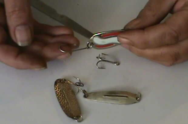 Cucharas son fáciles de enclavarlo las obras cierre del anillo como un llavero palanca abierto uno de los extremos del anillo de fijación con la Lima de uñas u otra herramienta y deslice el ojal del gancho que está despegando el señuelo bajo el extremo del anillo de fijación.