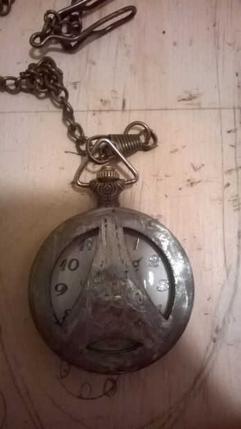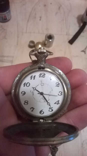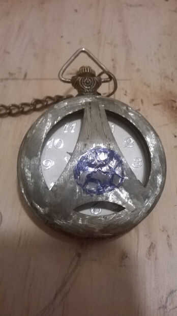 A continuación vuelva a colocar el reloj juntos. Comience con el protector de la cara del reloj, seguido por la cara y movimiento, la corona, la estructura de plástico, la parte posterior, el arco y la cadena.