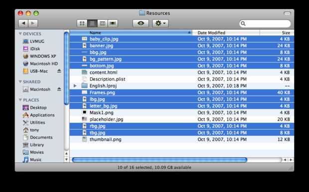 Necesitamos editar son los archivos content.html que define el diseño y la Description.plist que identifica todas las piezas que definen nuestros efectos de escritorio. Primero necesitamos agregar versiones alternativas de cada artículo que aparece como un componente gráfico.