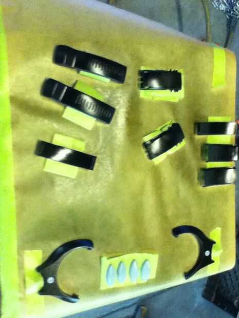 Como se puede ver he pintado mi par. prácticamente sólo puede quitar este paso si no planea pintando. lo principal que hice que es inmutable es que taladré un agujero coincidiendo en la "funda thingy" que ya no tiene uno en la parte inferior donde aquí es un surco pequeño. A continuación te ire a buscar un poco en mi proceso personal pintura. Usé un dupont rojo dos etapa coche pintura mezclado para un BMW. obviamente no al rojo en las fotos... he usado una mezcla de oro perla, escama de oro y escama roja en un lote de House of Kolor intercoat claro darle que se descolora de oro naranja. el negro que fue utilizado para el ajuste fue para algunos un poco VW. rematado los abrigos con un rápido flash dupont claro.