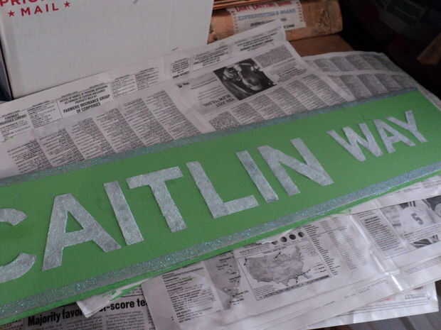 Para todos los que quieren un proyecto más ambicioso, usted puede hacer su propia carretera personalizada personalizada señales de dirección. Se aplica el mismo proceso, podría tener unas cuantas más formas y colores para tratar con. Sólo pintura y brillo de cada color por separado y esperar a que seque completamente antes de pasar a la siguiente. Por supuesto, usted necesitará probablemente un tablero más grande y un espacio más grande para colgar el cartel.